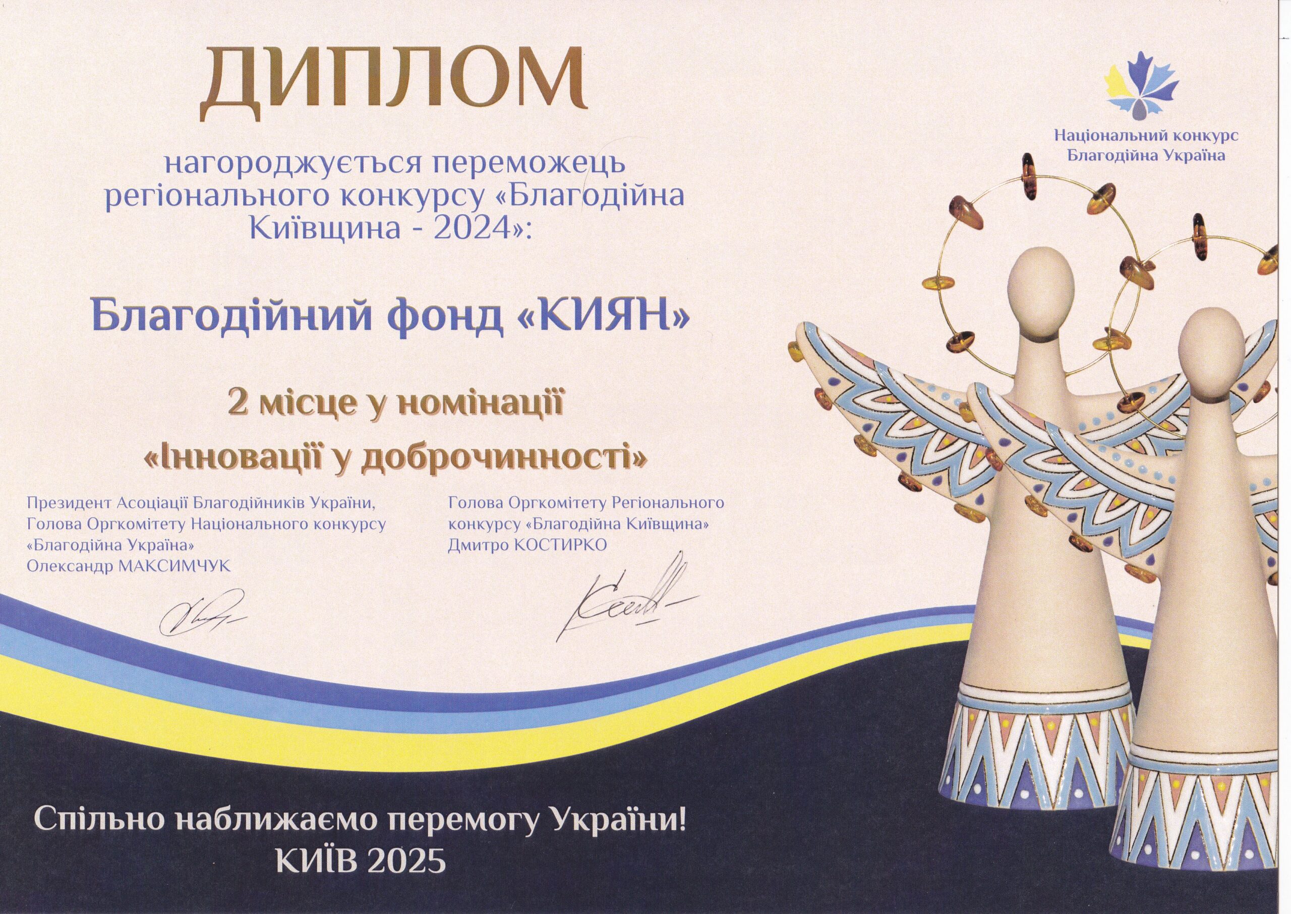 Благодійний фонд «Киян», заснований у 2017 році, - це організація, що допомагає дітям з дитячим церебральним паралічем (ДЦП), порушеннями опорно-рухового апарату та іншими неврологічними захворюваннями.