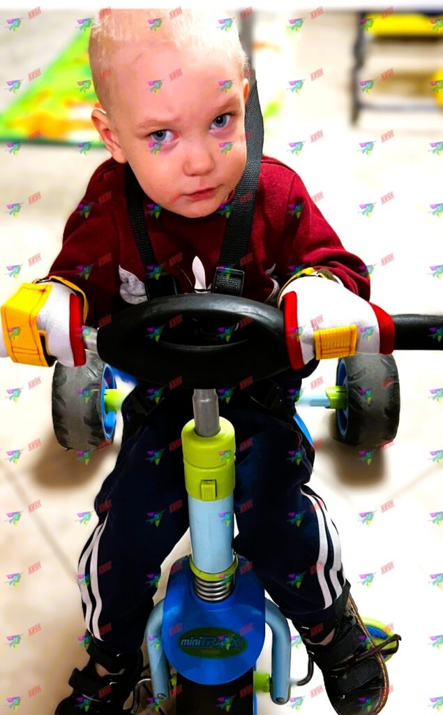 G80.0. ДЦП. Спастичний правосторонній геміпарез. Рухові порушення V рівня по GMFCS. Компенсована гідроцефалія (шунтована). Часткова атрофія зорових нервів. Східна косоокість справа. Затримка психомовного розвитку. Дисфункція емоційно-вольової сфери