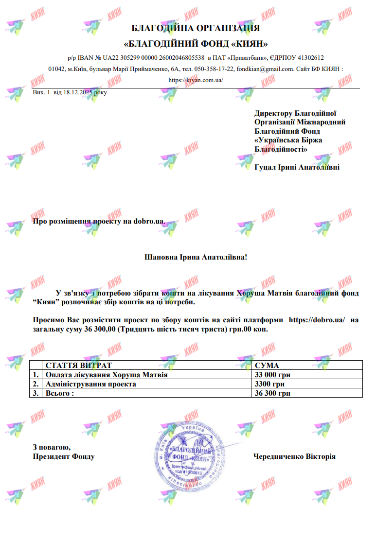 Підтримати Матвія можно також на dobro.ua