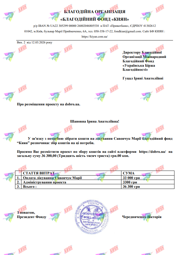 Підтримати Марійка можно також на dobro.ua
