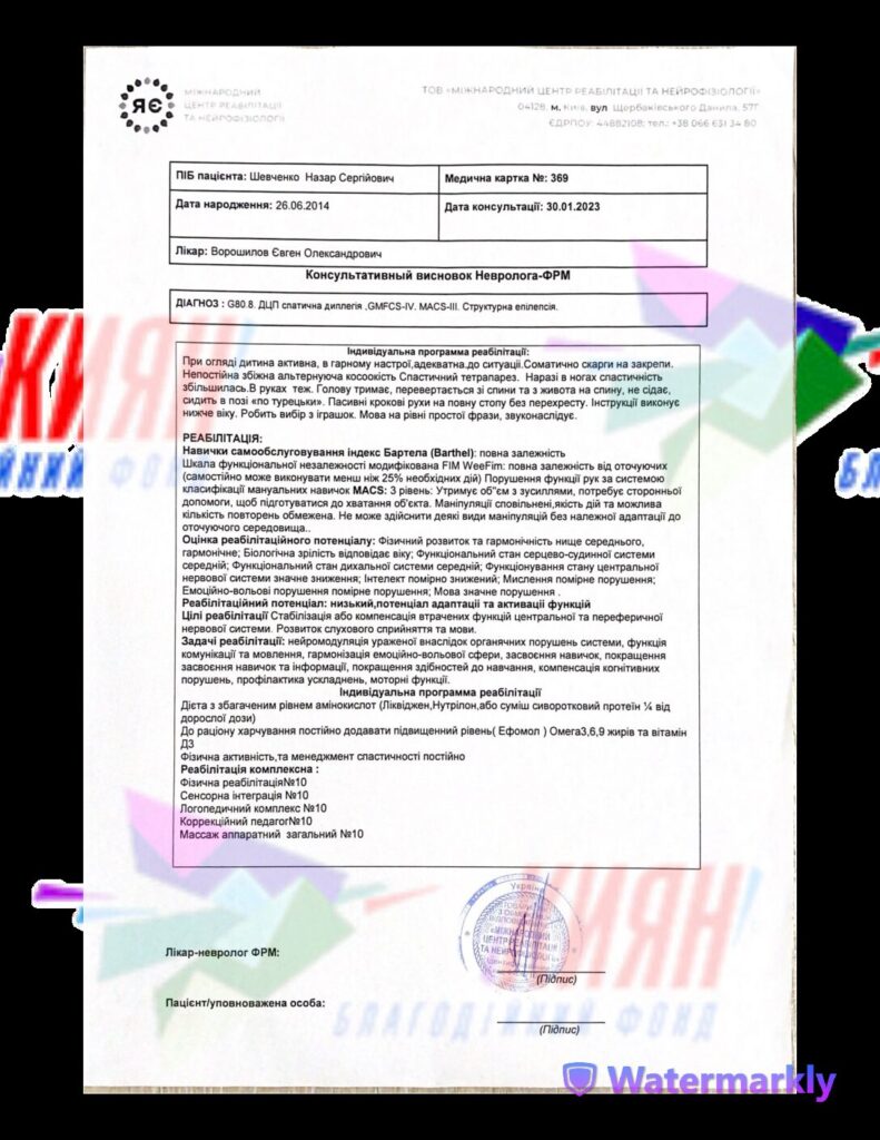 Діагноз: ДЦП, спастична диплегія, симптоматична епілепсія