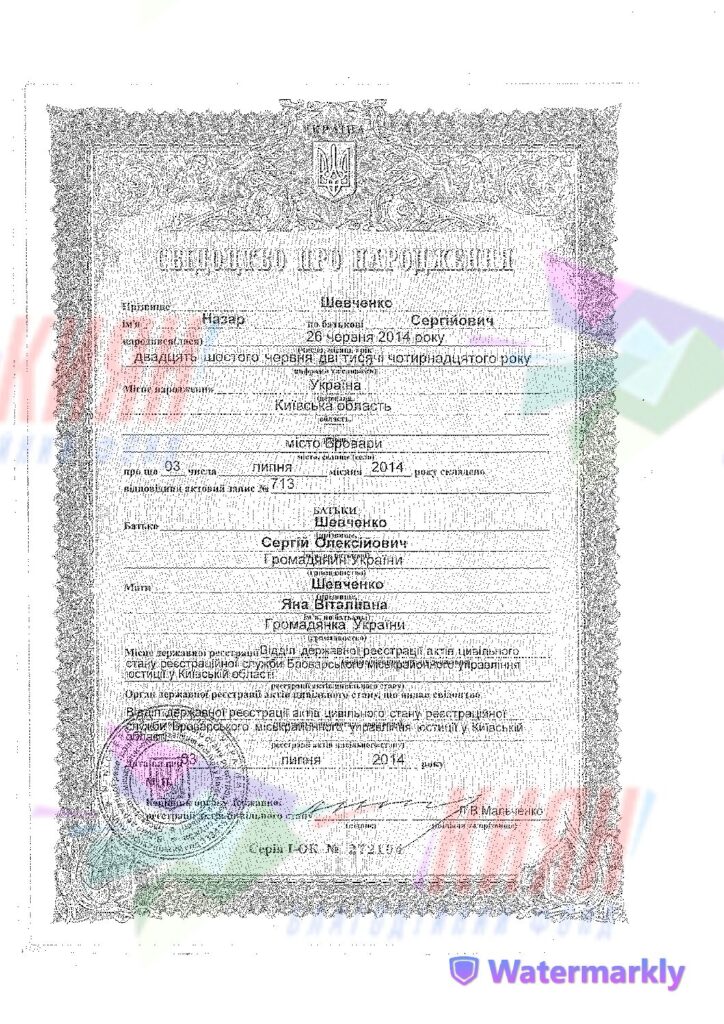 Повне ім’я: Шевченко Назар Сергійович,, 26.06.2014 р.