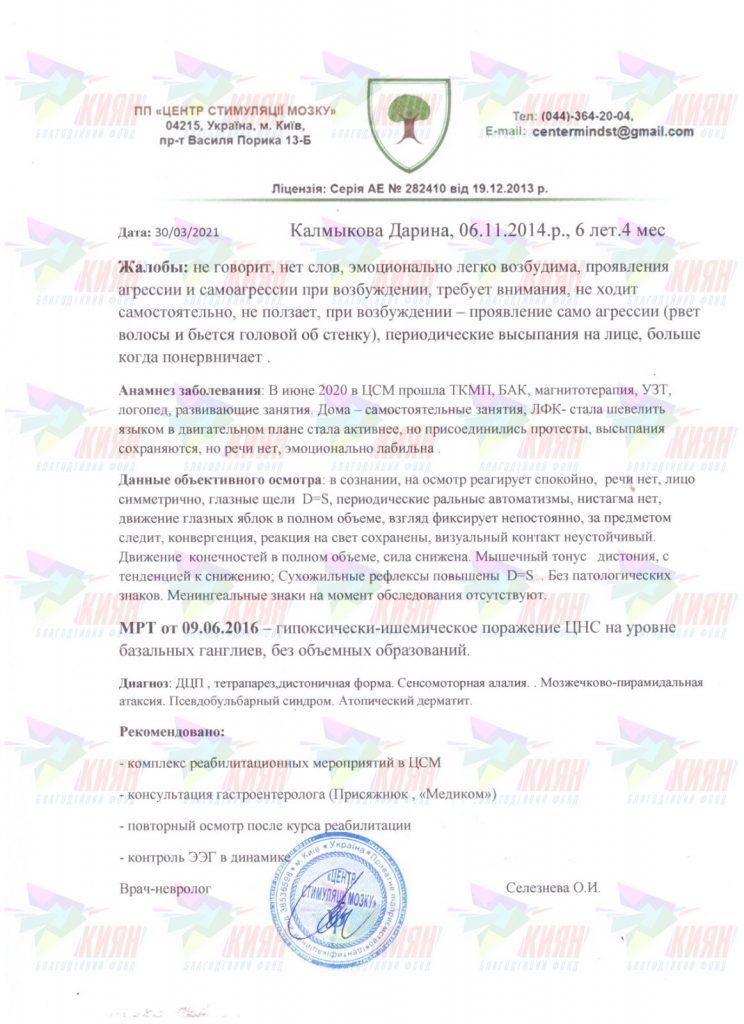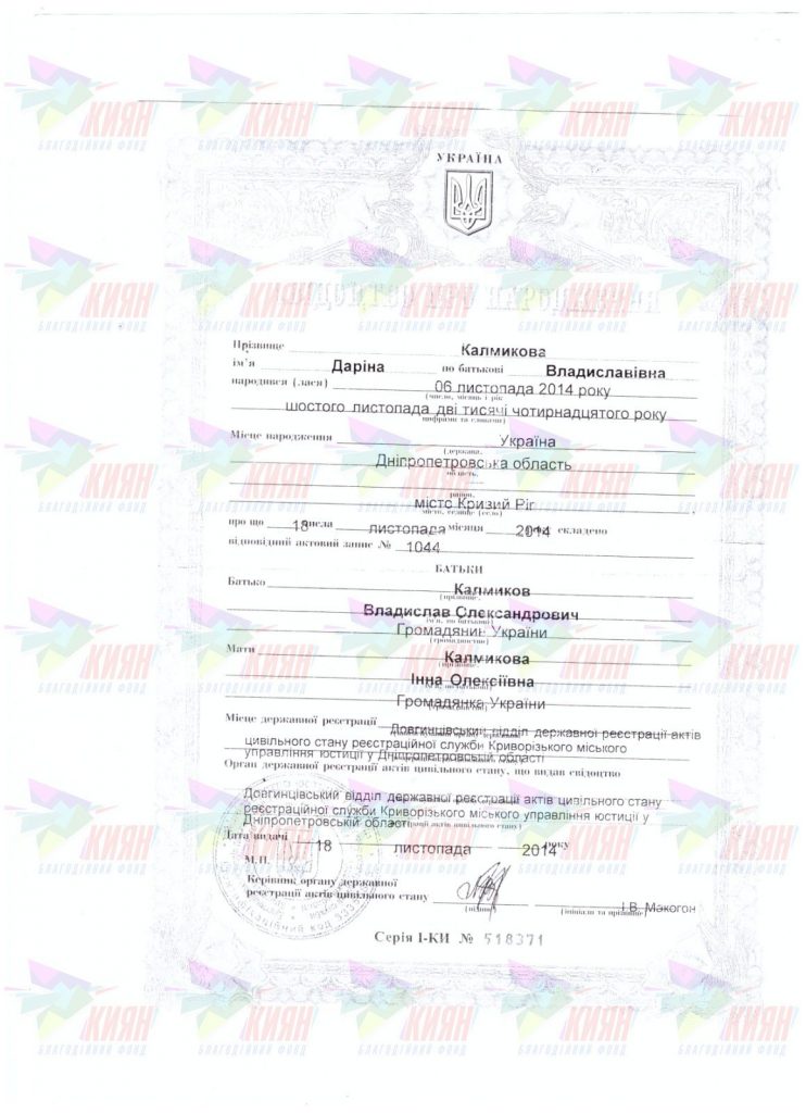 Ім’я: Калмикова Даріна Владиславівна, 08.11.2014 р.