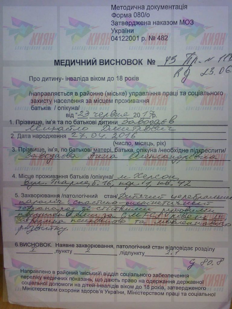 До вагітності, як і завжди, поставилися дуже серйозно, здавали всі аналізи, робили УЗД, не пропускали жодного походу до лікаря. Але доля, мабуть, знову вирішила нас покарати. Води відійшли на 29 тижні, і все не було б погано, якби не лікарі, які чомусь навіть і не думали про екстрений кесарів розтин», – зі сльозами на очах розповідає мама Мишка.Після народження у Мишка виявили гіпоксію мозку, після чого у його житті, яке тільки-но розпочалося, сталися півтора місяці у реанімації, майже місяць під апаратом штучного дихання та ще місяць у відділенні новонароджених. За цей час молоді батьки витратили всі свої заощадження та ще й набралися боргів, бо відчайдушно боролися за життя сина.