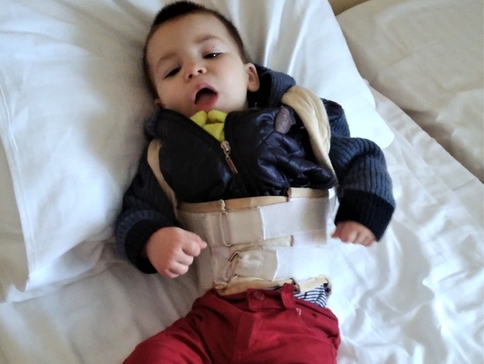 Диагноз: аноксическая энцефалопатия, спастический тетрапарез тяжелой степени (V уровень за GMFCS), псевдобульбарный синдром, психоорганический синдром (хроническое вегетативное состояние), обусловленный утоплением в пресной воде, состояние после клинической смерти. Носитель трахеостомы.