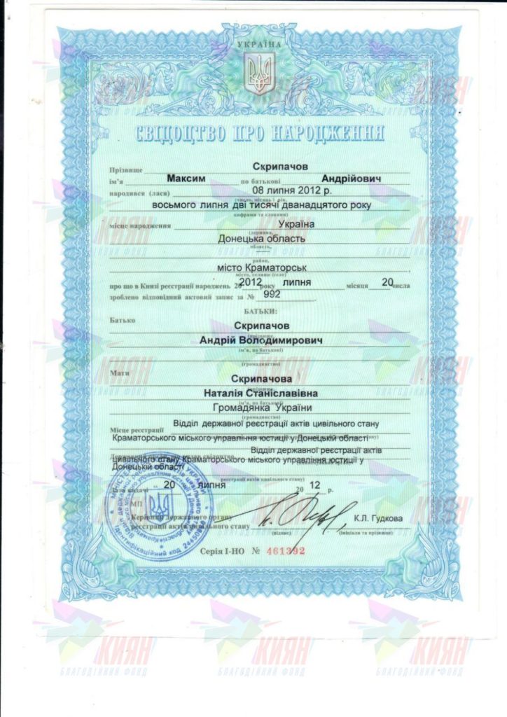 ФИО: Скрипачов Максим Андрійович, 08.07.2012 р.