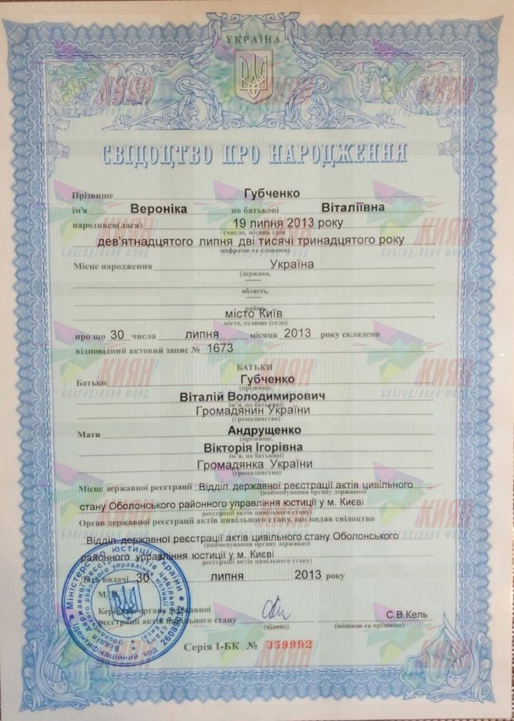 Ім’я: Губченко Вероніка Віталіївна, 19.07.2013 р.
