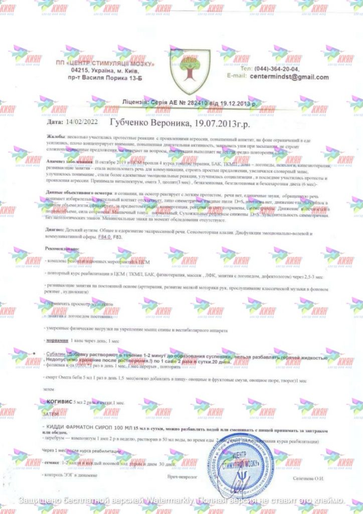 Діагноз: Аутизм. Затримка мовлення та психічного розвитку.