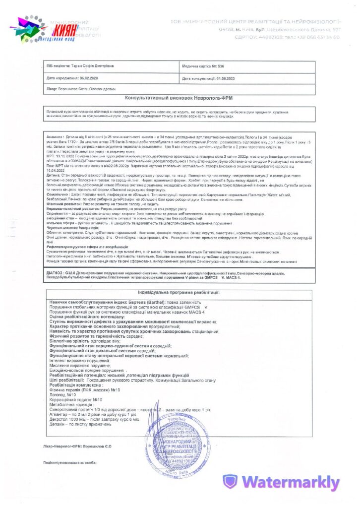 У віці 2 років і 2 місяців батьки помітили, що в дівчинки погіршилася ходьба, із кожним днем ставало все гірше та гірше. Через певний час Софія перестала ходити. Уже понад рік дівчинка не ходить, самостійно не сидить, не тримає голівку, не розмовляє і не завжди реагує на звернення. Софія споживає лише рідку їжу.