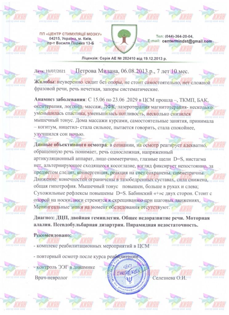 Звісно, зважаючи на діагнози, із якими Мілана бореться і досі, її дитинство не можна назвати абсолютно щасливим. Важка щоденна праця вдома, заняття з реабілітологами, масажі, ЛФК, ліки та болючі процедури – це те, чим живе дівчинка. Чи важко це? Звісно. Чи ефективно? Однозначно. Лише комплексна терапія і реабілітаційні курси покращують стан дівчинки. Після кожного нового курсу лікування Мілана стає більш спокійною, вимовляє свої перші слова і намагається самостійно сидіти. Це чудові результати!