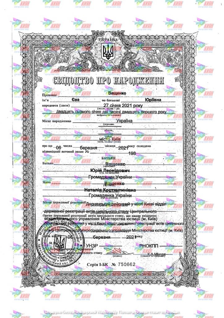 Ім’я: Ващенко Єва Юріївна , 27.01.2021 р.