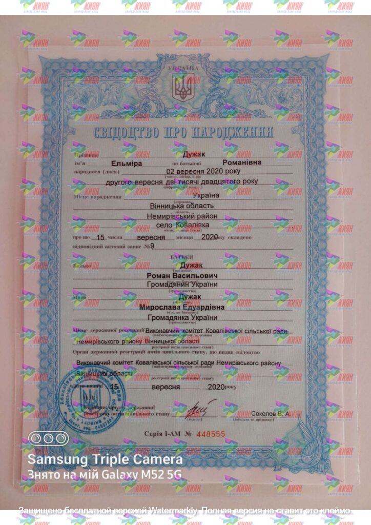 Ім’я: Дужак Ельміра Романівна, 02.09.2020 р.