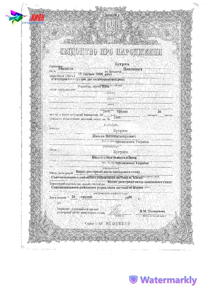 Повне ім’я: Бугрим Микола Павлович, 15.12.2006 р.
