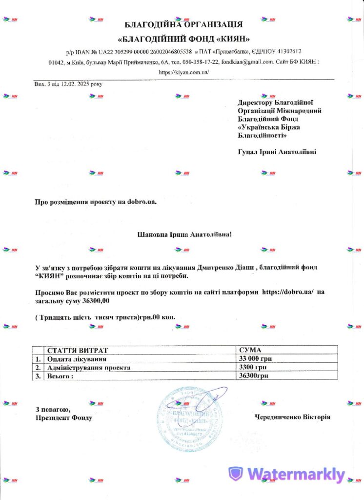 Підтримати Діану можно також на dobro.ua