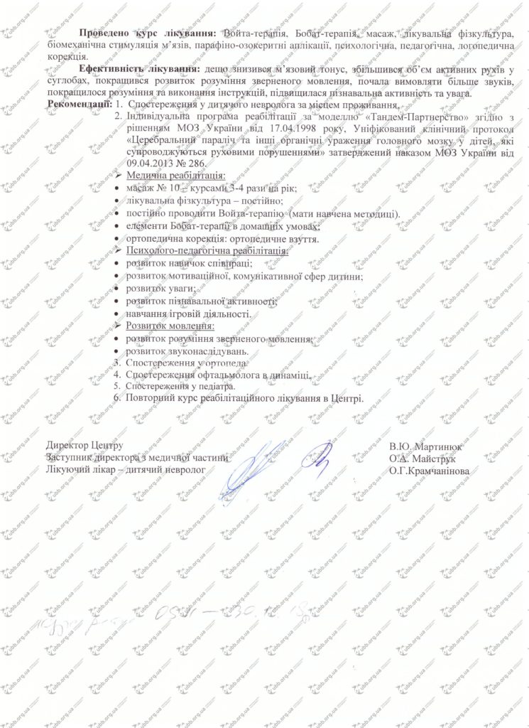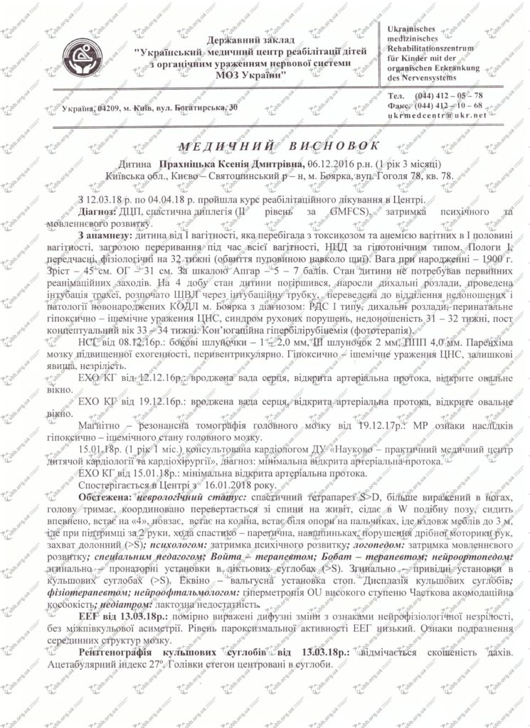 Диагноз:ДЦП, спастична диплегія 2 ступеня, затримка психічного та мовленнєвого розвитку