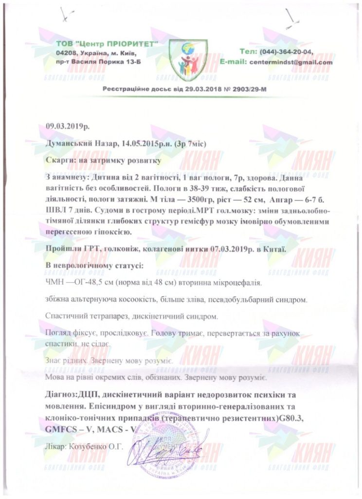 Диагноз: ДЦП, дискінетична форма, затримка психо-мовного розвитку