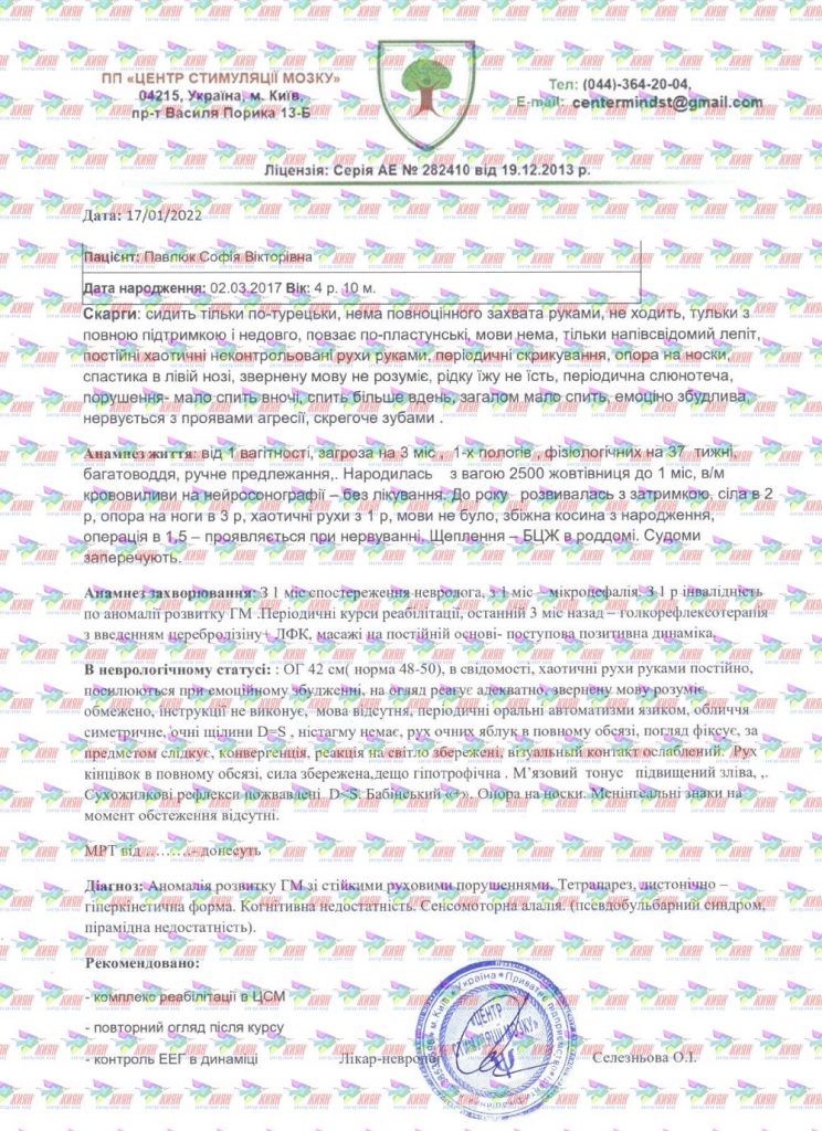 Ім’я: Павлюк Софія Вікторівна, 02.03.2017 р.