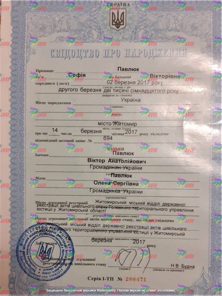 Ім’я: Павлюк Софія Вікторівна , 02.03.2017 р.