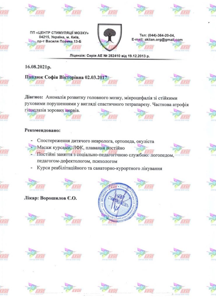 Софійка – рання пташечка, яка народилася передчасно. Відразу після появи на світ у дівчинки діагностували мікроцефалію, гіпоксично-ішемічне ураження ЦНС, часткову атрофію зорового нерва і синдром рухових порушень. Вже вдома рідні почали помічати, що Софія відстає у розвитку.