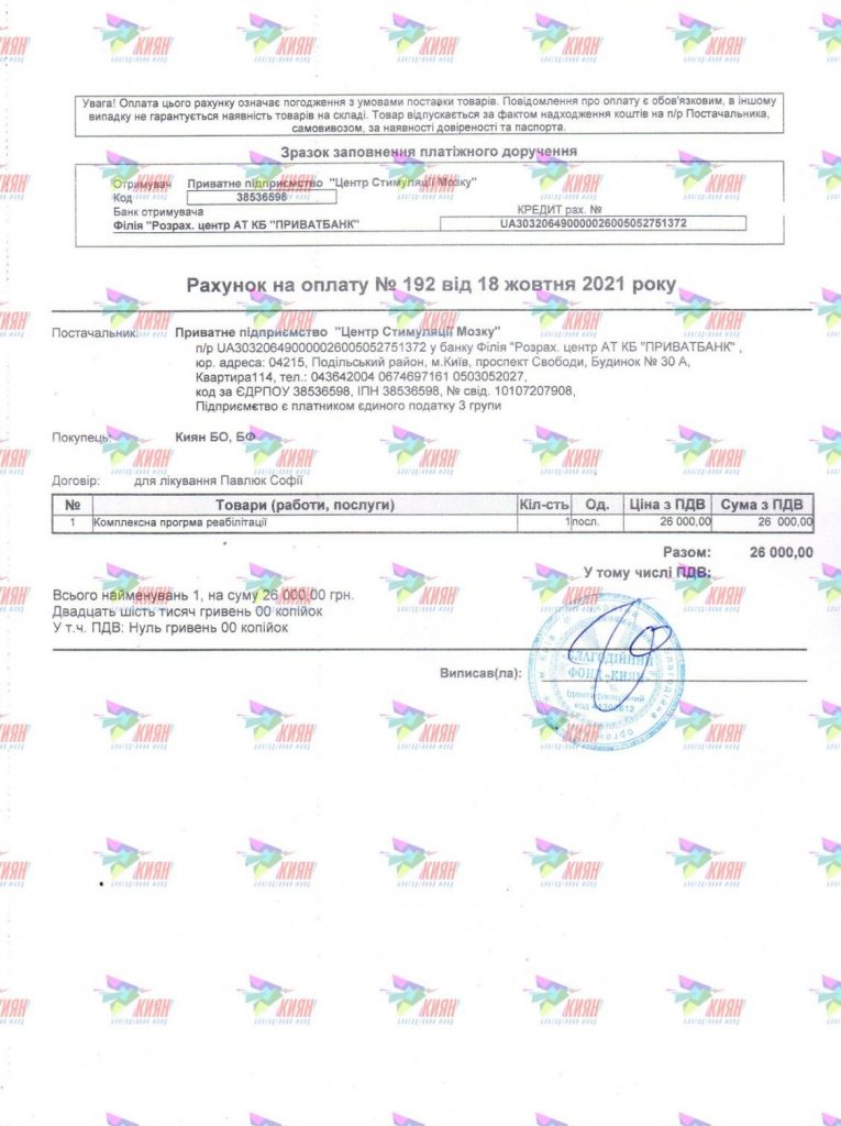 Дівчинка почала проходити посилену реабілітацію і відвідувати заняття з ерготерапевтом, логопедом-дефектологом і неврологом. Таке лікування дає хороші шанси на одужання та нормальний розвиток Софії. За 4 роки такої терапії дівчинка досягла великих результатів: Софія вже впізнає батьків та рідних, самостійно сидить, повзає, встає біля опори і тримає в руках різні предмети.