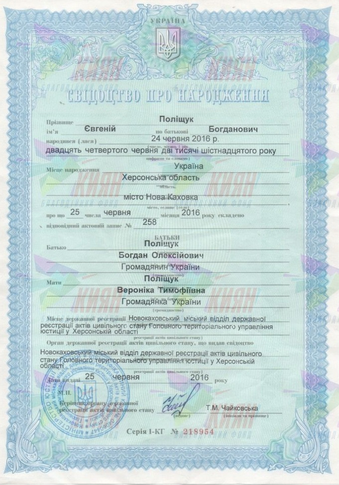 Ім’я: Поліщук Євгеній Богданович, 24.06.2016 р.