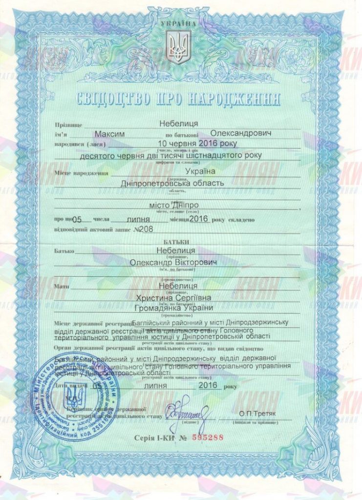 Ім’я: Небелиця Владислав, 07.03.2013 р., Максим Олександрович, 10.07.2016 р.