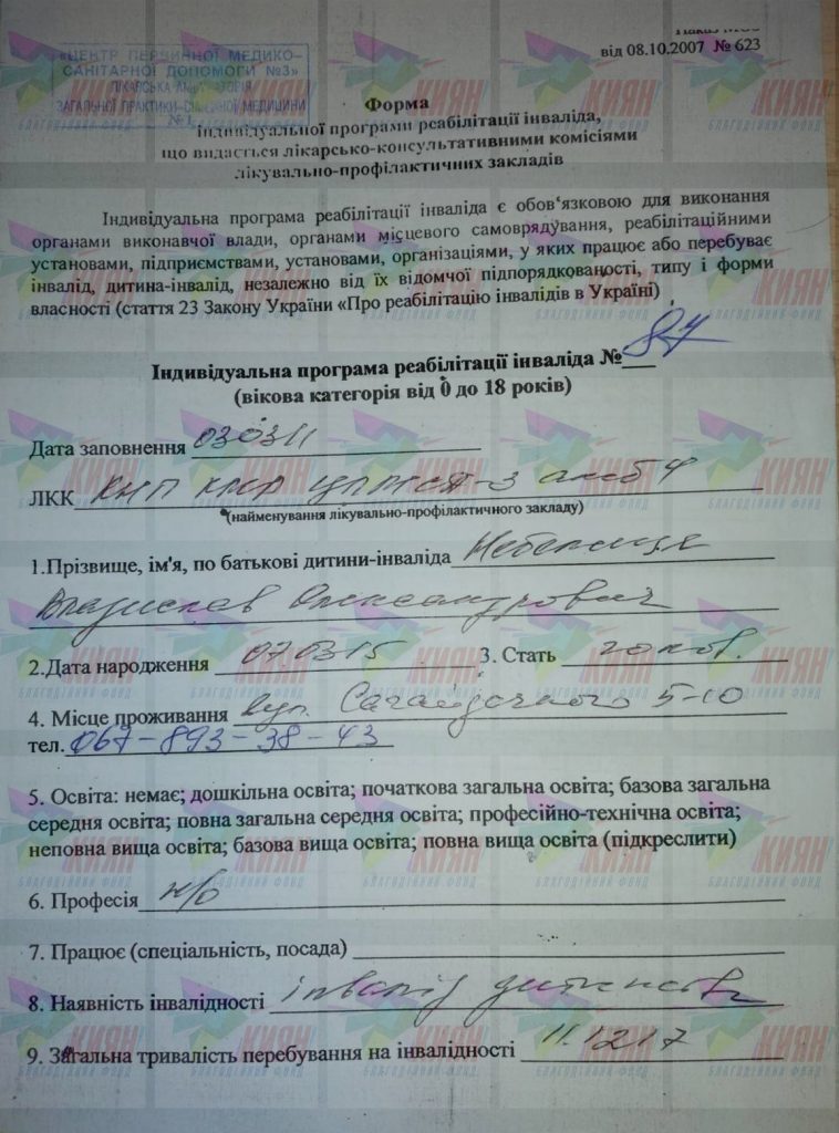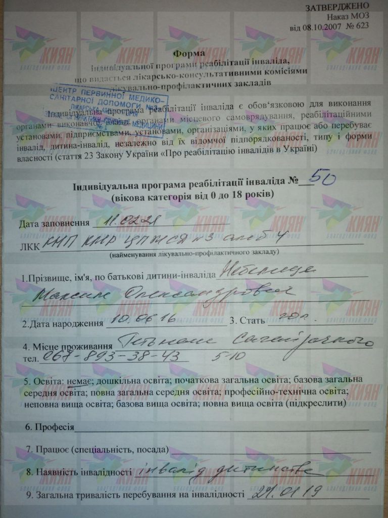 Діагноз: Владислав: хромосомная хвороба, розумова відсталість важкого ступеня, сенсомоторна алалія, атаксія, змішаний тетрапарез, НФТО по центральному типу, стійка соціальна дезадаптація; Максим: ДЦП, атонічная-астатическая форма, затримка психомовного та моторного розвитку, гідроцефалія сомоторна алалія, атаксія, змішаний тетрапарез, НФТО по центральному типу, стійка соціальна дезадаптація;