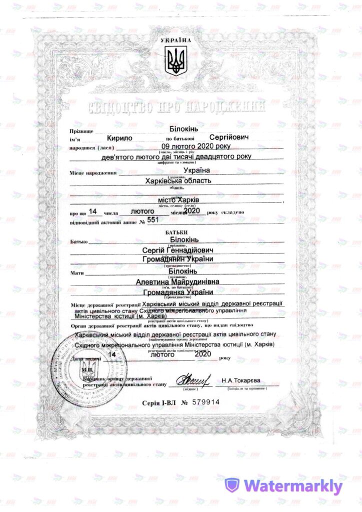 Повне ім’я: Білокінь Кирило Сергійович, 09.02.2020 р.