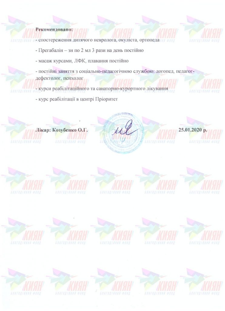 Діагноз: ДЦП, спастичний тетрапарез, симтоматична епілепсія, мікроцефалія, дистонія, хронічний запор