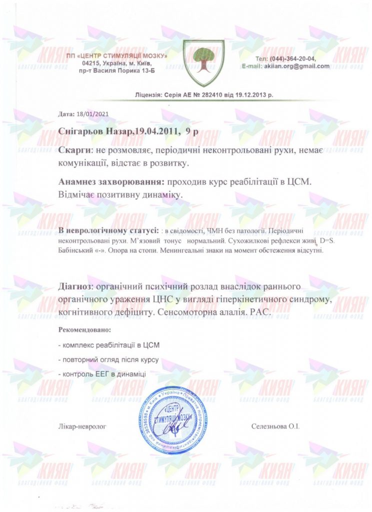 Ім’я: Снігарьов Назар Геннадійович, 19.04.2011 р.