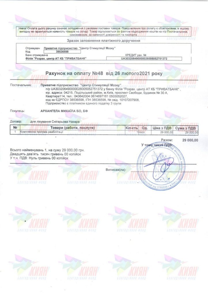 Реабілітації допомагають покращити стан Назара: хлопчик потрохи починає усвідомлювати себе та світ навколо, реальність, у якій він живе. Назар уже більше розуміє, проте ще не все. Він більш самостійний, зчитує емоції на обличчях інших людей і виражає власні, проте поки без слів. Назар став більш контактним, а це говорить про ефективність лікування.