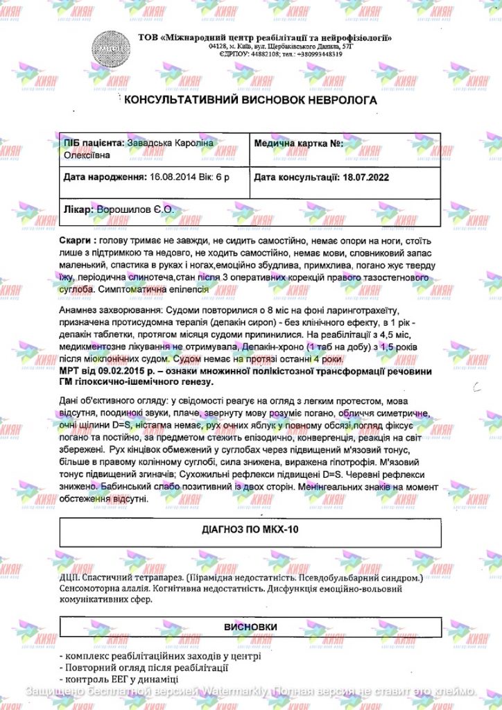 На щастя, систематичні реабілітації допомагають покращити стан Кароліни. Після останнього курсу лікування стан ноги та коліна значно покращився, лікарі говорять, що найближчі декілька років операцію можна не робити! Також завдяки заняттям із логопедом дівчинка почала вимовляти нові звуки, а курс апаратного масажу допоміг знизити тонус мʼязів. Це надзвичайні результати, які надихають на продовження боротьби! А оскільки лікування Кароліни переривати не можна, адже терапія має бути регулярною, ми розпочинаємо збір коштів на новий курс реабілітації. Підтримайте дівчинку, адже вона живе в постійному болі!