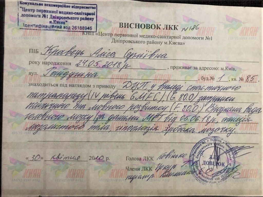 Діагноз: ДЦП, спастичний тетрапарез; дуплікація короткого плеча 8 хромосоми; агенезія мозолистого тіла, гіпоплазія черв’яка мозочка; гастроезофагальний рефлюкс