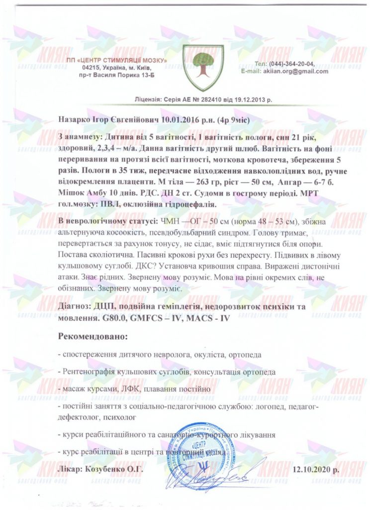 Хлопчик нещодавно повернувся з останнього курсу лікування, після якого став дуже уважним, він почав цікавитися навколишнім світом, у його мовленні з’явилися нові слова. Загалом це дуже гарні результати, які зараз не можна втратити. А для цього потрібно продовжити лікування. Тому ми знову звертаємося до вас, наші помічники, і просимо допомогти Ігорю потрапити на новий курс реабілітації!