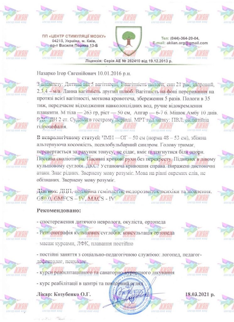 Ім’я: Назарко Ігор Євгенович, 10.01.2016 р.