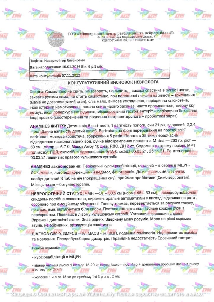 Зараз хлопцю 6 років, і на останньому курсі реабілітації він навчився краще керувати своїм тілом, впевненіше сидіти, у нього покращилися когнітивні навички – Ігор навчився розрізняти де право, а де ліво. Він дуже сумлінно займається, зосереджений на заняття та ніколи не плаче, навіть якщо втомився.