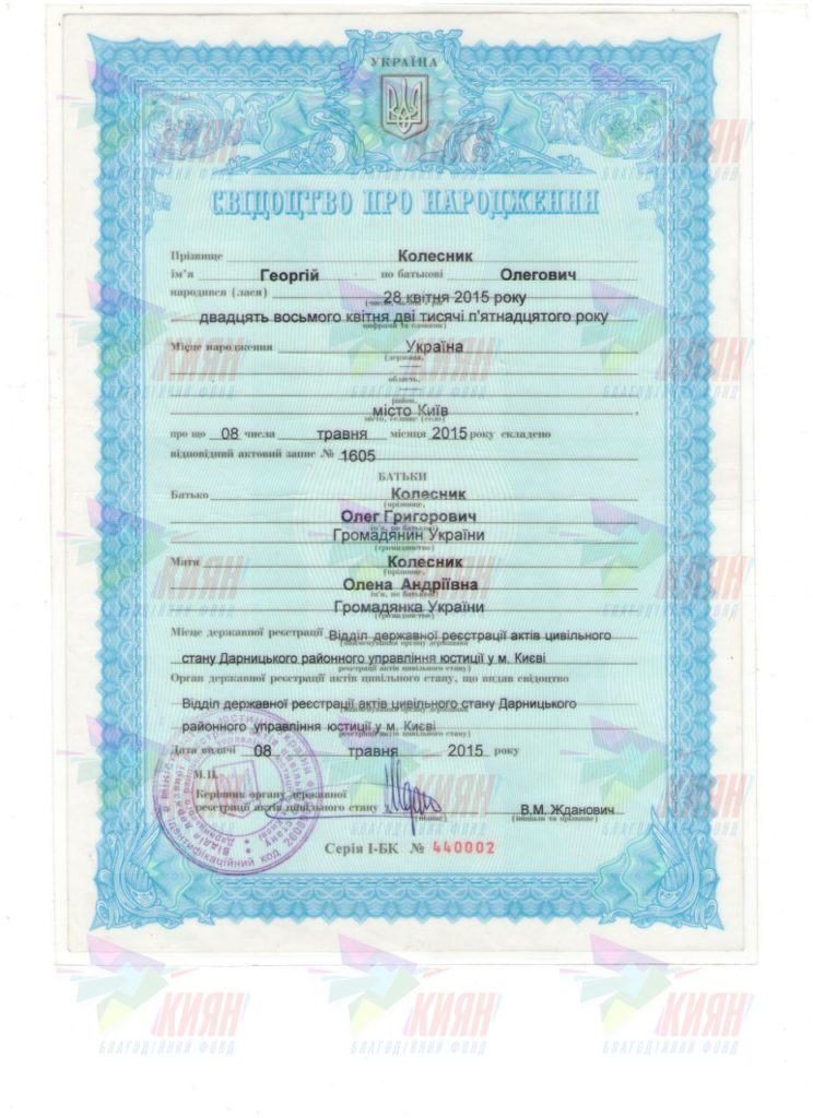 ФИО: Колесник Георгій Олегович, 28.04.2015 р.(