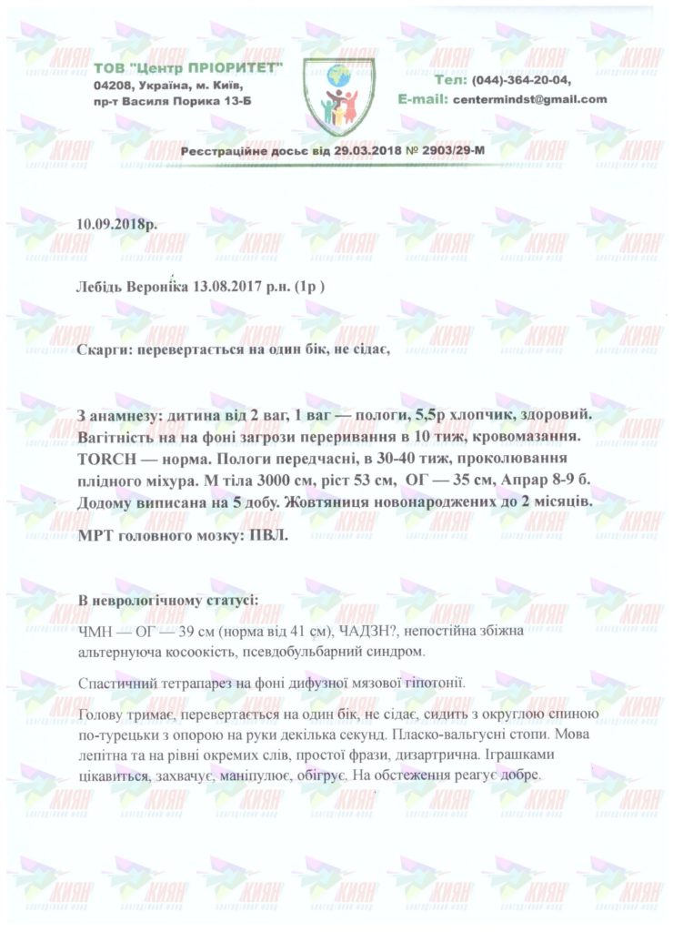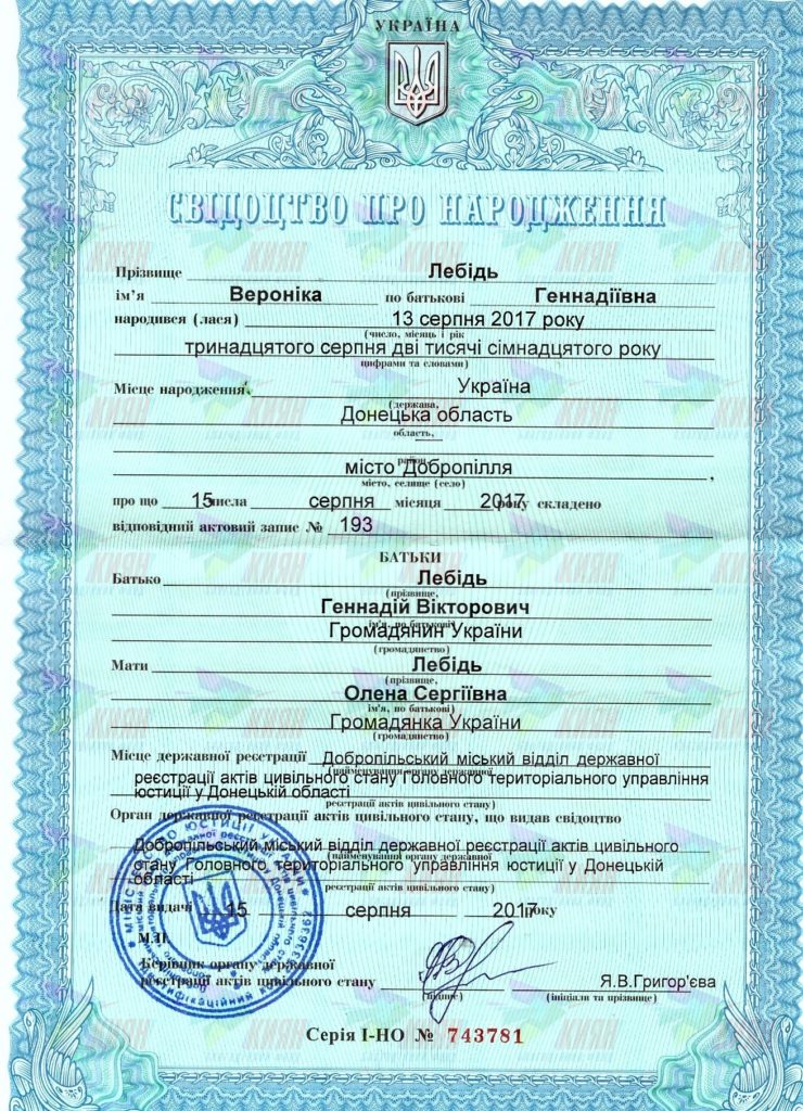 ФИО:Лебідь Вероніка Геннадіївна, 13.08.2017 р.