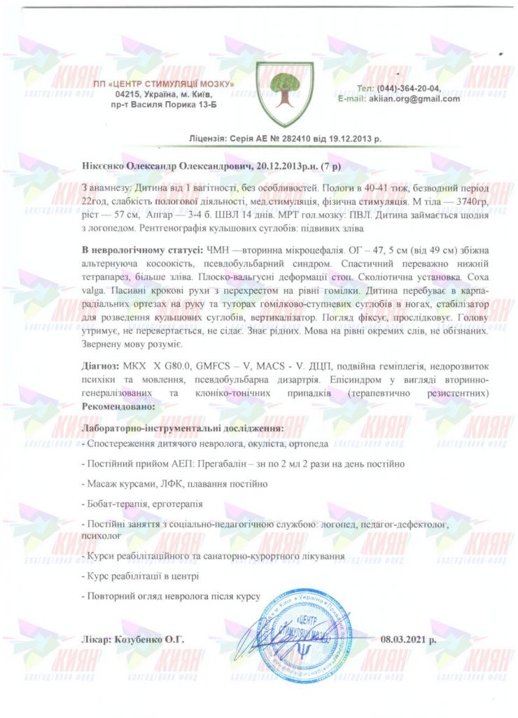 Зараз для Вероніки майже 4 роки, і вона досі хворіє. Вторинна мікроцефалія, спастичний тетрапарез, псевдобульбарний синдром, затримка психічного та мовленнєвого розвитку – із цими діагнозами дівчинка бореться, не покладаючи рук. І завдяки вашій підтримці, дорогі донори, Вероніка може відвідувати такі необхідні курси реабілітації. Після останнього такого курсу дівчинка навчилася тримати предмети ручками – можливо, для здорових діток це легко та просто, проте Вероніці потрібно постійно вчитися і стимулювати дрібну моторику для цього.