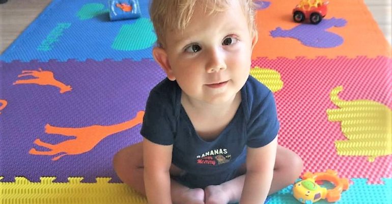 Тимоша вже пройшов багато курсів лікування, але у нього досі залишились ознаки гіпертонуса, які виявляється через косоокість, викручування рук, стояння на пальчиках і зупинки дихання. У свої 1,5 роки Тимоша досі самостійно не перевертається, не повзає, не стоїть на четвереньках, не сидить, не стоїть і не ходить.