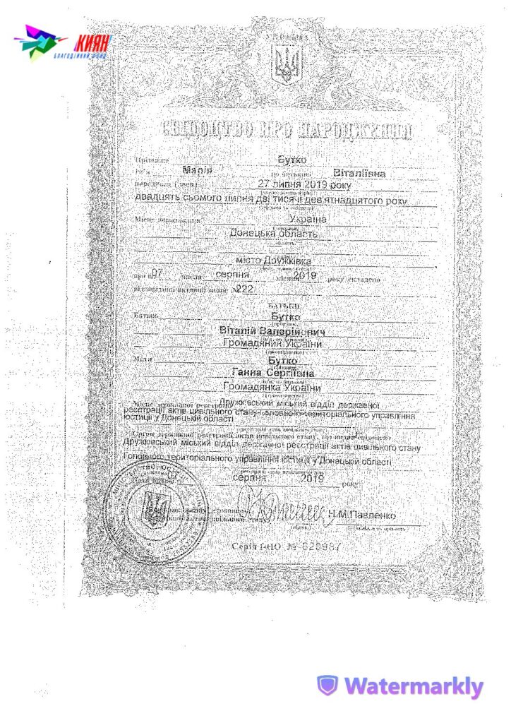 Повне ім’я: Бутко Марія Віталіївна, 27.07.2019 р.