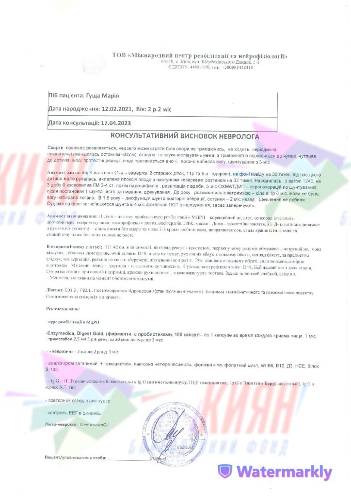 Марійка поки самостійно не ходить, погано набирає вагу і потребує постійного догляду дорослих. На щастя, реабілітації у спеціалізованих рентрах допомагають покращити її стан. Якщо до терапії у дівчинки було сильне слиновиділення, вона боялася незнайомих людей та дуже гостро реагувала на дотики чужих людей, то під час лікування Марійка вперше самостійно займалася зі спеціалістами! Дівчинка навчилася зосереджуватись на заняттях, стояти без підтримки, говорити перші склади і навіть робити свої перші кроки, тримаючись за руки. Чудові результати, погодьтеся. І якщо не зупинятися на досягнутому, результати можуть бути ще більш вражаючими.