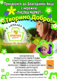 Мережа магазинів «Пчелка маркет» та бренд «Три Ведмеді» у вересні 2018-го року розпочинають благодійний проект заради підтримки Віри Зінчук (6 років). Захід проводиться разом з благодійним фондом «Киян». Детальна інформація про історію хвороби дитини на сайті фонду: https://ubb.org.ua/uk/project/4269/