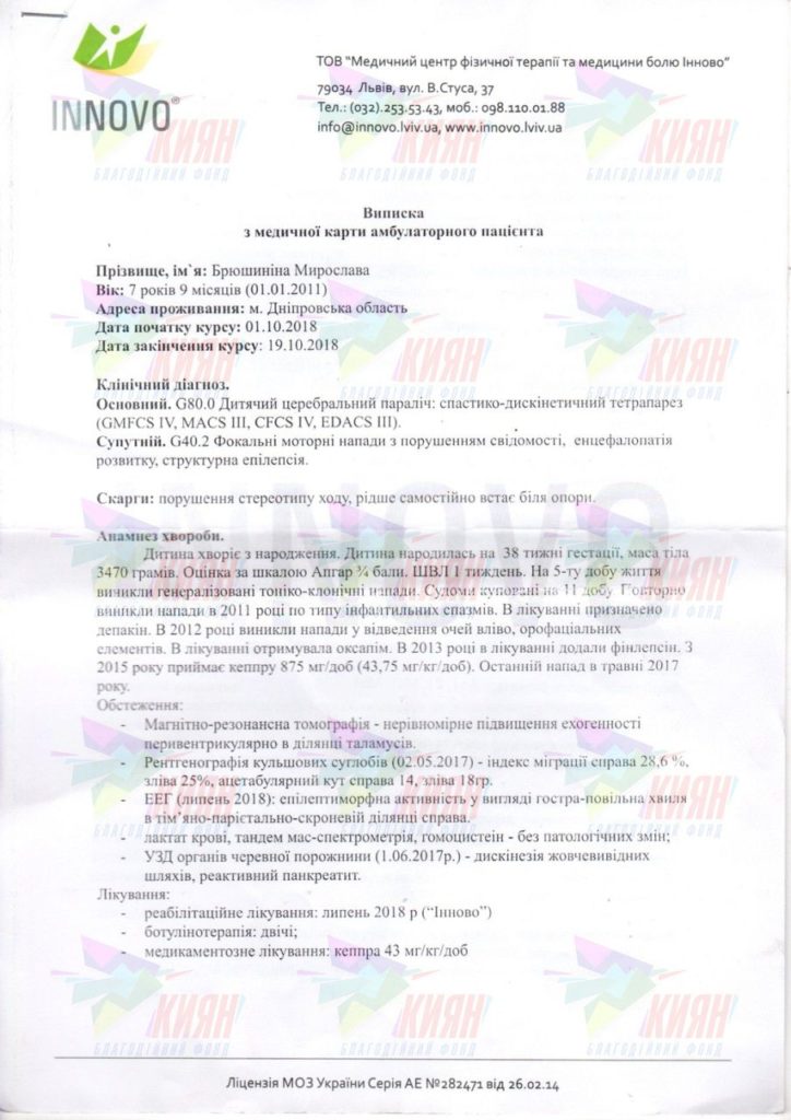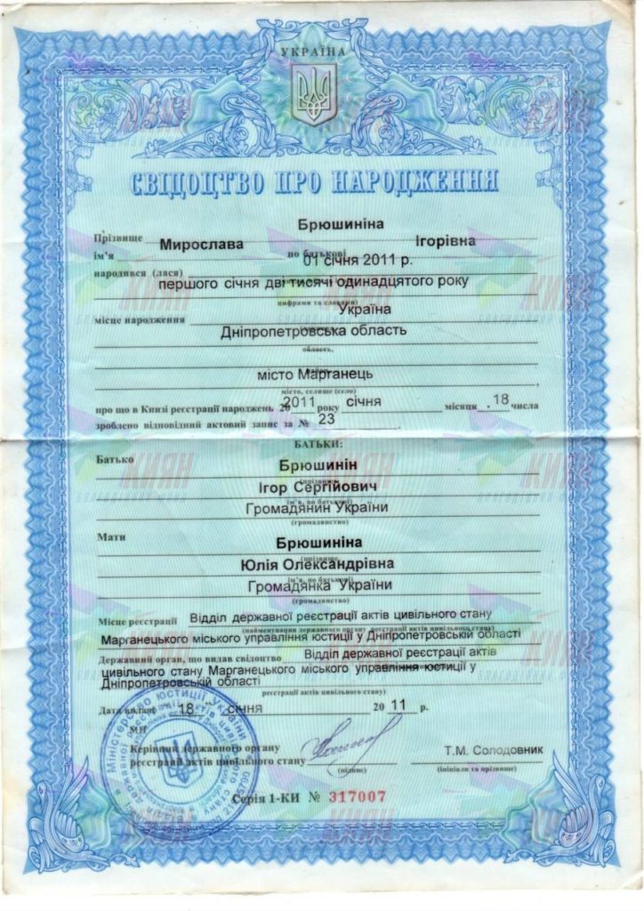 ФИО: Брюшиніна Мирослава Ігорівна, 01.01.2011 р.