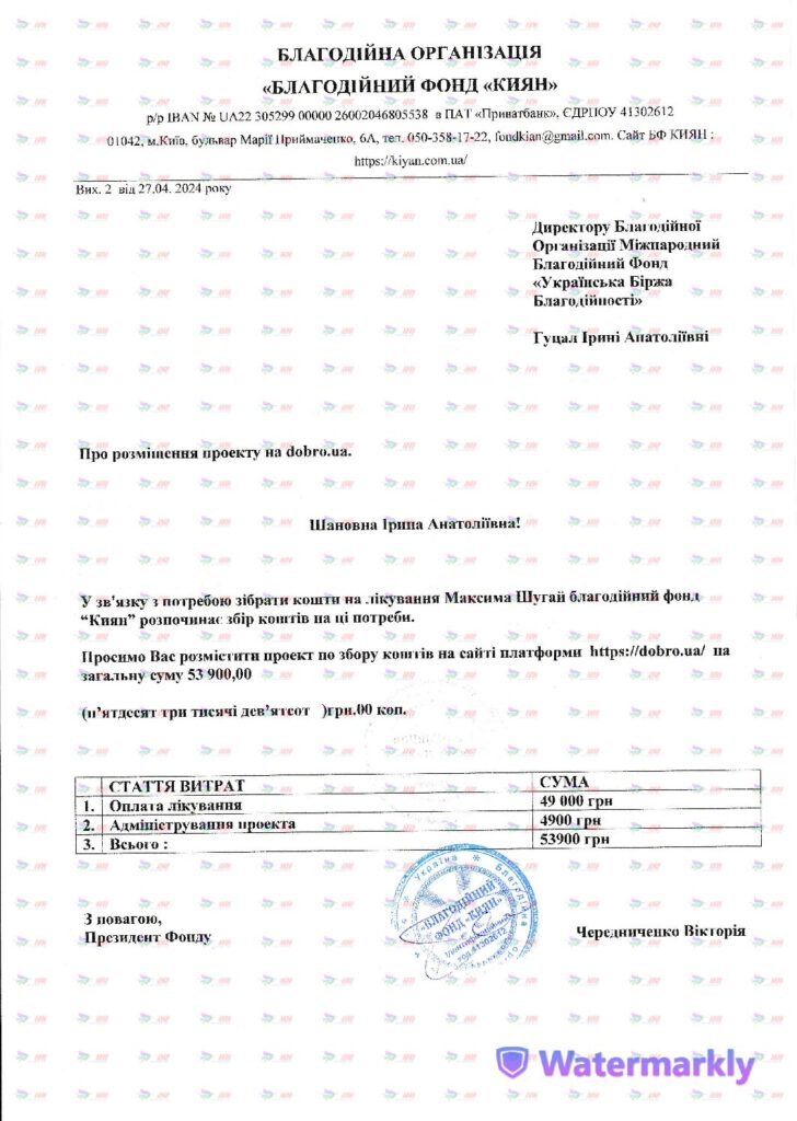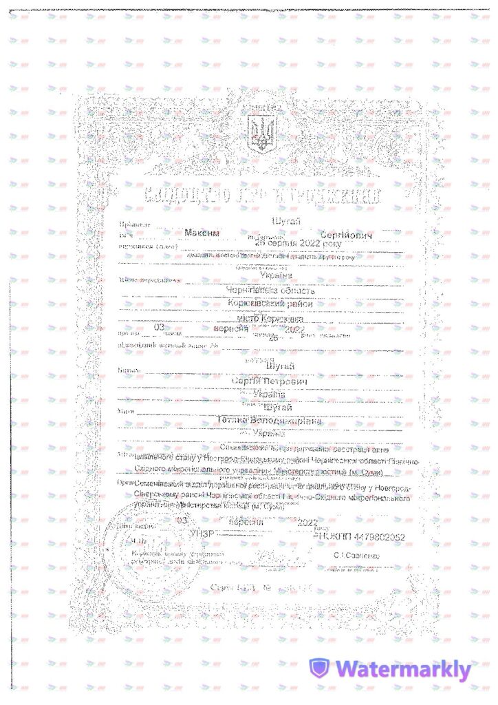 Повне ім’я: Шугай Максим Сергійович, 26.08.2022 р.