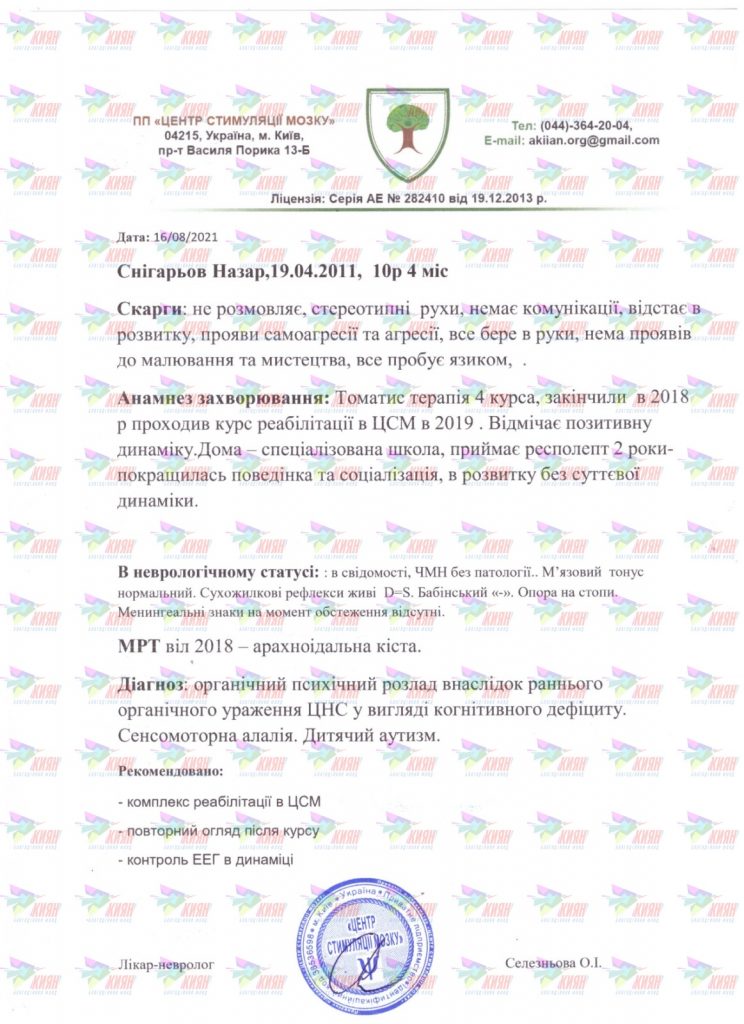 На щастя, рекомендована лікарями терапія допомагає хлопчику: постійна і наполеглива робота приносить свої результати. Хлопчик потрохи усвідомлює себе, навчається показувати та контролювати емоції, він уже більше всього розуміє і краще виконує різні прохання та інструкції. Назар став більш терпеливим, стриманим та зацікавленим – насамперед, це проявляється у поведінці та навчанні.