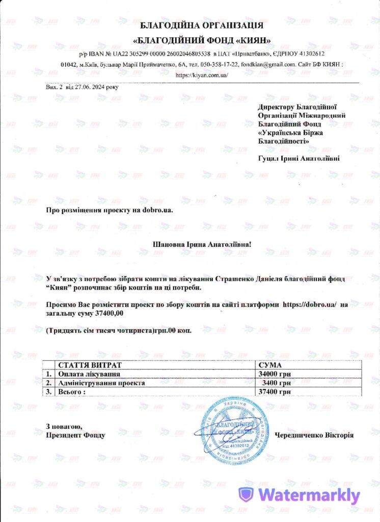 Даніель народився на 30 тижні другим із двійні, пережив гіпоксію та крововилив 3 ступеню. Внаслідок цього в малюка виник спастичний тетрапарез (ДЦП), епілепсія та гідроцефалія. Даніель переніс шунтування, 5 нейрохірургічних операцій та операцію на очах, був на зондовому вигодовуванні. Загалом хлопчик провів 7 місяців в «ОХМАТДИТі».