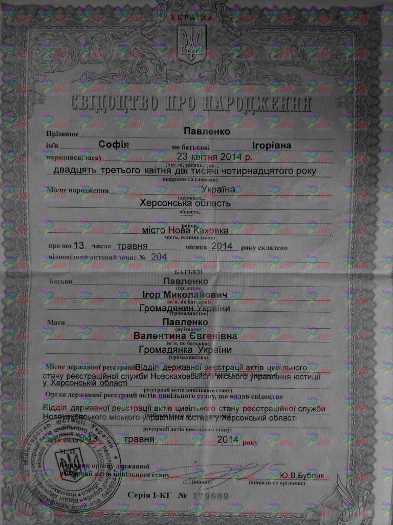 Ім’я: Павленко Софія Ігорівна, 23.04.2014 р.