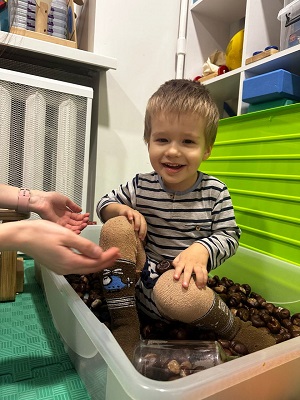 Синочку дуже сподобалася сенсорна Інтеграція. Від цих процедур у синочка з’явилося більше звуків ,він став набагато краще відчувати своє тіло,став менш збуджений та почав краще спати.