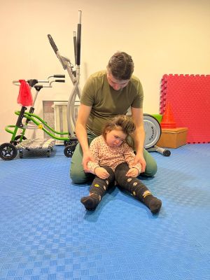 іана має діагноз ДЦП, затримка психомоторного розвитку, спастичний тетрапарез. В цьому курсі ми відвідали заняття з ЛФК, масаж, логопедичне заняття, консультацію з неврологом.